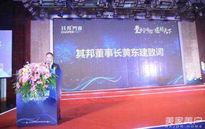 其邦门窗董事长黄东建作2017年工作报告以2018年工作规划。2017年其邦门窗为今后更好占领市场作了众多改变,黄董从四方面进行工作总结,一、厂区搬迁,一年时间,其邦从搬迁到二期厂房投产正式使用,生产线不断完善;二、新产品研发步伐加快,门窗主导产品以及辅助产品不断推向市场并取得良好反馈;三、产品升级,紧跟市场变动方向,对产品作出全新升级,不断完善产品质量与外观;四、公司内部管理完善,ERP系统的引进、升级改善生产线流程作业,聚邦管理公司进驻科学化管理公司结构。