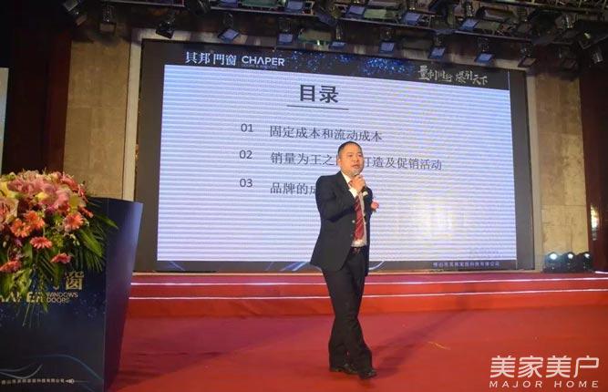 其邦门窗管理顾问公司聚邦公司总经理谭炳炎发表讲话。门窗行业,交期、进度、服务、流程是重要而又复杂的五个环节,聚邦谭总首先对黄董的高瞻远瞩进行了称赞,而后他围绕这五个方面进行了细致的解释,让在座经销商了解聚邦在其邦将会做什么,要做到什么程度,解决怎样的问题。