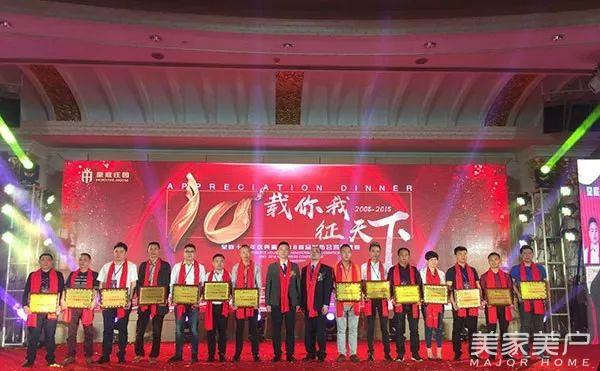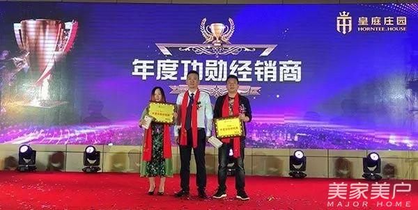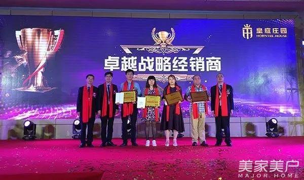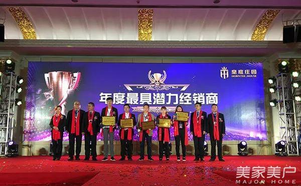 皇庭十周年庆典暨2018新品发布会现场还进行的是颁奖典礼——年度最具潜力经销商、卓越战略经销商、战略供应商、员工颁奖(含鲁班奖、优秀员工、销售冠军、守护者)。并且还进行了2018年招商政策方案宣导和当场签约环节。