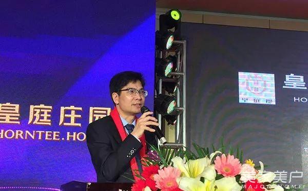 皇庭集团总经理唐明瑜先生首先上台致辞,对来到现场的嘉宾的支持表示感谢,同时回顾了皇庭的成长历程。在成立之初,皇庭在金融风暴等大环境下破釜沉舟,以最快的周转速度配备资本、资源。产品升级也从3.8到4.5,这样使得皇庭的订单急剧增长,一个个服务到位的经典案例,使皇庭公司成为当时有一定名气的企业。皇庭庄园以革命性的研发改进,从中国制造到中国创造,逐步提高竞争力,从单一的木制品到定制产品,皇庭印证了木门企业的变迁,如今也已成长为富有朝气的综合性企业。