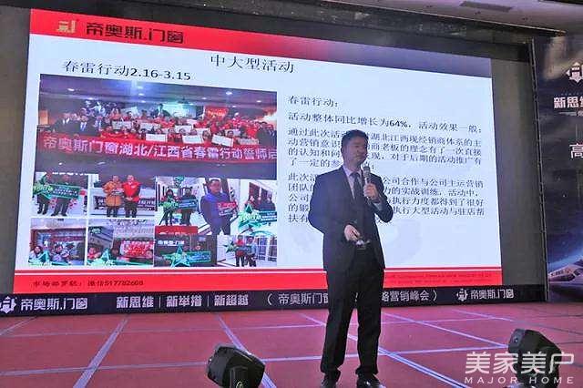 接下来,帝奥斯门窗营销副总梁焕新先生进行了精彩的总结和回顾,并对帝奥斯2018年的营销战略进行规划和部署。