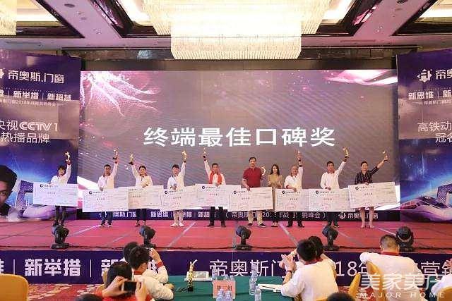 28日下午,作为本次会议的重头戏之一-----优秀经销商颁奖典礼。帝奥斯门窗对2017表现突出的经销商家人们进行了表彰,分别为他们颁发了七大奖项,感谢他们一年来辛勤的付出及取得的优秀成绩,以此鼓励经销商家人们将以更饱满热情的姿态迎战2018。