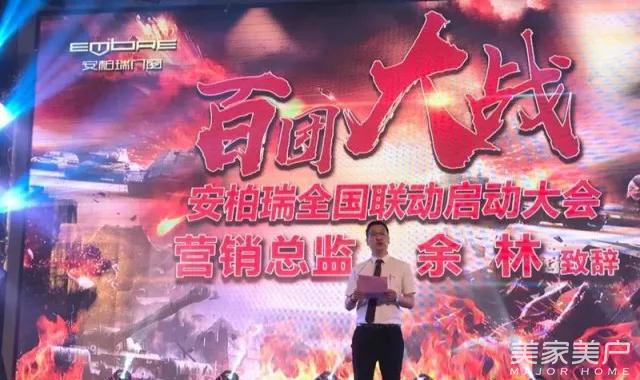 安柏瑞门窗营销总监余林发表致辞,他代表安柏瑞对在场的各位来宾表示热烈的欢迎和衷心的感谢,感谢大家在百忙之中抽空前来参加盛会。安柏瑞一路走来,是各位经销商朋友与公司万众一心,才有今天的佳绩,再一次感谢大家,希望大家再接再厉。