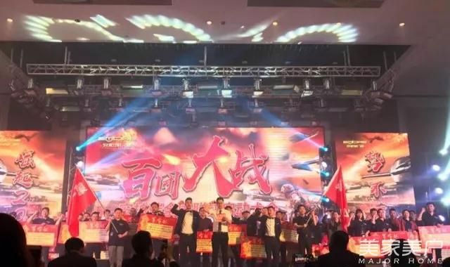 大区带领经销商代表进行活动宣誓,立军令状,充满鼓舞气息的场面让每一个安柏瑞家人热血沸腾。余总请示董事长,正式宣布百团大战全国联动启动,而后台上经销商共同合影,记录下这难忘时刻。