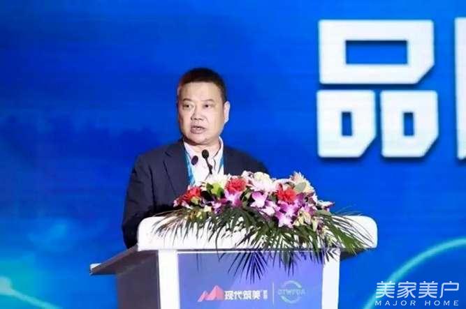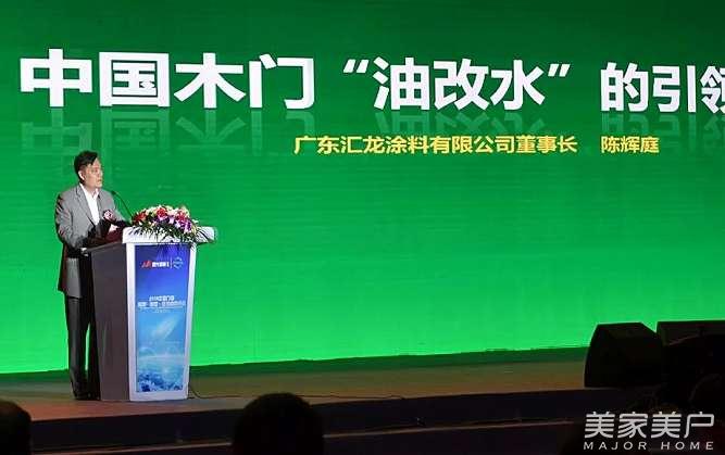 汇龙涂料董事长陈辉庭在中国木门双承诺30强新闻发布会上致贺辞并作“木门油改水”的专题分享