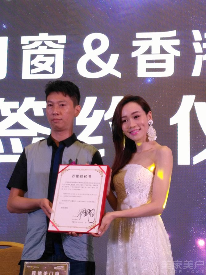 著名香港影视明星、香港冠军小姐杨思琦的到场将活动推向高潮!杨思琦与真德美门窗董事长蔡学良进行合作签约,并与来宾合影。预示着真德美门窗在品牌升级上更上一个台阶。