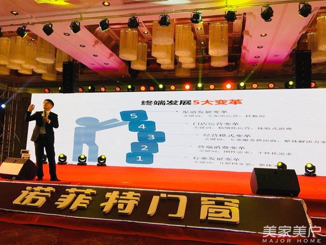 下午,在诺菲特销售团队的精彩表演后迎来了会议的开始,诺菲特董事长余董首先上台致辞,提出了终端帮扶是2018年诺菲特重点投入对象,并道出希望与经销商家人们并肩作战,奋斗出属于诺菲特的珠穆朗玛峰!接下来,诺菲特总经理陈总作经销商大会工作汇报,他还表示诺菲特业绩增长了59%,诺菲特在售后服务、产品品质、生产开发等做出的优秀成绩,并相应地总结了2017年诺菲特在有些方面的不足,他信心十足地说道诺菲特2018年将火力全开,完成指标各项任务,发展无止境,奋斗在路上!