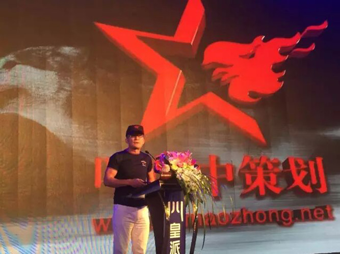 策划大师叶茂中出场,把本次活动推向了高潮,现场掌声不断!叶茂中进行皇派未来主题演讲。他通过有趣的猫的故事,跟大家分享了品牌崛起的秘诀。四个关键的因素:伟大的创意、意义深远的核心价值、持续强势的营销活动、数量可观的传播广告,叶大师还通过视频与在场观众互动。