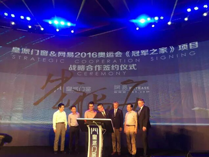 最后,进行皇派&网易2016奥运会“冠军之家”项目签约/启动仪式,国际合作供应商等嘉宾共同见证了此次签约启动仪式。网易房产家居策划总监李雨值演讲中说到:“通过有趣的PPT展示了网易的发展和成功的营销案例,做中国“有态度”的门户。”至此,活动圆满结束!