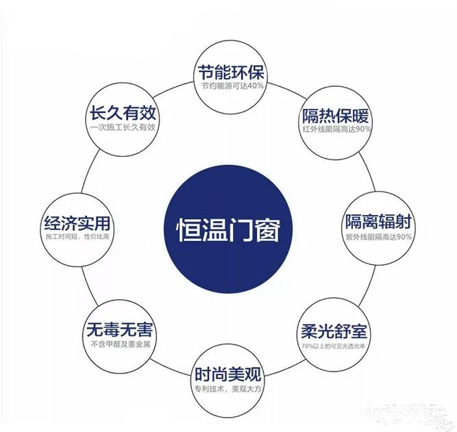 恒温门窗膜层牢固,化学稳定性好,具有耐高温,抗腐蚀,抗氧化,寿命可达10年以上。