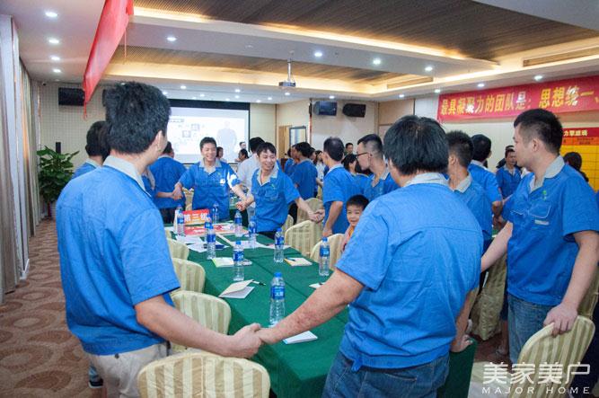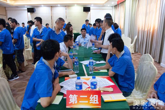 最具凝聚力的团队是:思想统一、目标统一、行动统一。在沈老师的精彩演讲后,为打造企业冠军战队开启了企业团队pk竞赛。员工们分为5队小组进行竞赛,模拟5个车间组建团队,集中训练。在团队操练展示、学习内容成果展示白板报、企业精神标语、企业八大军规、四大禁规制作、团队合作文艺节目表演这五大项进行比赛。由厂长、指导员带领员工在比赛中取得胜利,取得价值。现场气氛激烈,员工们士气高涨,自信满满的念出各自的pk宣言。
