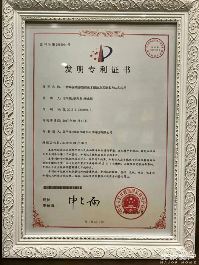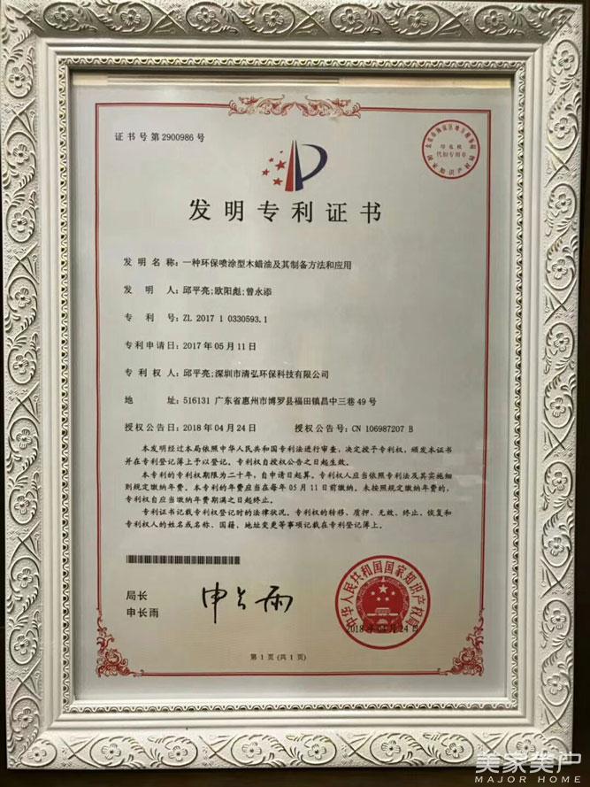 深圳清弘喷涂木蜡油获三项国家发明专利
