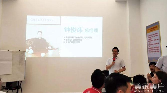 13时30分,培训会议正式开始,新帝豪成员表演了感恩的心手语舞,对TC23百分百责任训练营成员的到来表示感谢和欢迎。紧接着,钟总就产品宣传、品牌展示、企业文化等方面阐述了新帝豪门窗的发展,并表示过去的辉煌皆为序章,绝不止步于现在,未来的发展会再攀高峰。