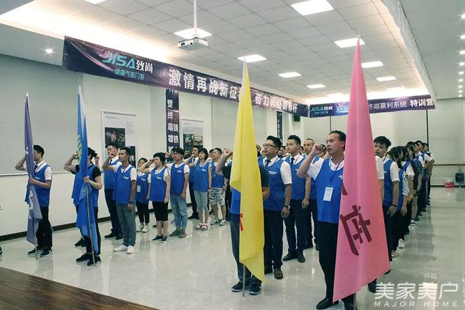 致尚门窗在注重打造健康的人居生活的同时,也十分注重团队的建设,此次魔鬼训营中就采取军事化的管理模式,打造出一支钢铁之师。经销商们更是在结营仪式中立下军令状,势必把Z8系统执行到底。