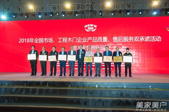 2018年展会期间,“中国木门窗”30强“活动举行。图为:获奖企业(部分)