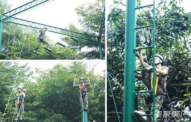 高空项目是对每一个人勇气的考验,踏上高台,每一个人都已经走上了自我超越的第一步。勇敢迈出那一步,他们手牵手,再大的困难都能携手跨过!