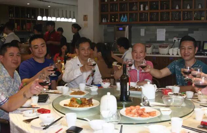 最后,大家到附近的一家餐厅进行了隆重又温馨的聚餐酒会。大家一同举杯,共同祝贺嘉盛木门东方店生意兴隆、财源滚滚!