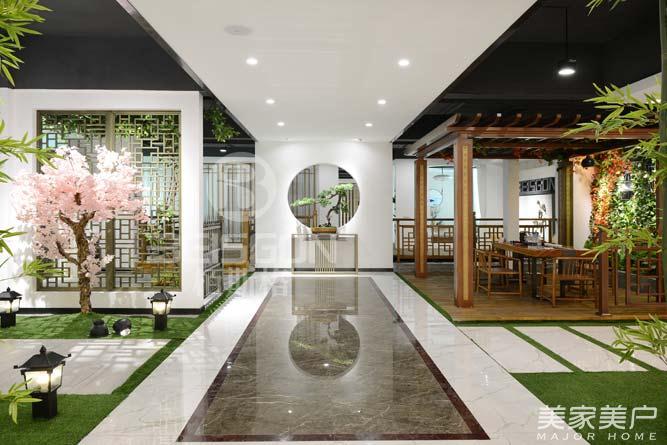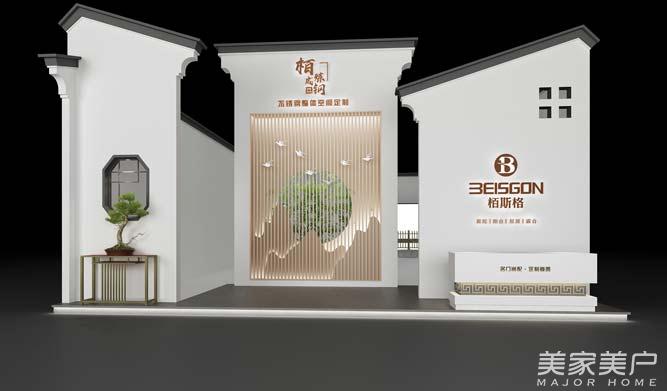 为了展示与传承,栢斯格本次建博会展馆将新中式风格作为主调,强调简约和典雅。沿用了徽派建筑的白墙黑瓦,化繁为简的去掉中式砖雕,保留了徽派庭院的“四水归堂”特征,栢斯格运用不锈钢材质,创造出一座新中式艺术展馆,营造出天地人和、移步换景的新派美景。