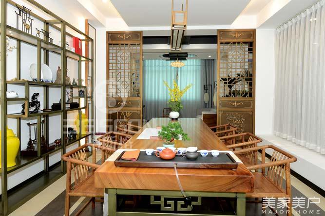 整体造型以内敛沉稳的古意中国为出发点,融入现代设计语言,为现代空间注入凝练唯美的中国古典情韵,让居住者感觉到浩瀚无垠的文化传统。设计师将家居定位徽派新中式为主风格,其洇散而出的古典美韵,洗去了城市的喧嚣。