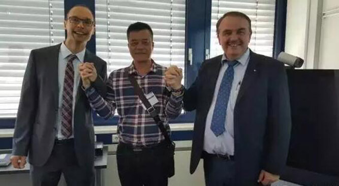 德国舒德梅特总裁一行到公司参观,他们是集团总裁Manfred Rettensteiner曼德先生(左二)、技术总监pierluigi martinelli皮尔先生(右三)、广州分公司CEO崔建晓先生(左一)、佛山分公司CEO夏武军先生、佛山分公司陈中远经理。