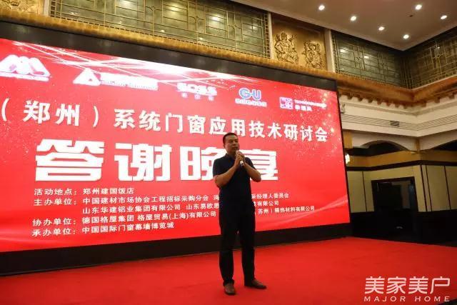 华建铝业集团大北方区域总裁张立国先生为本次会议致辞,对集团的发展作了介绍,他希望,本次的研讨会能够将易欧思品牌更加深入的推向郑州市场,为郑州的房地产及门窗行业发展带来更加强劲的动力和活力。