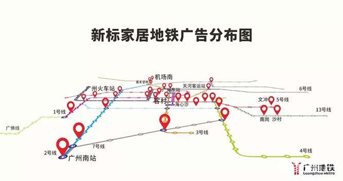 此次新标地铁广告投放,覆盖包括广州地铁2号线、3号线、5号线等在内的多条客流量极大的地铁线,截止至7月1日,大面积地铁广告投放已完成,大众可在地铁站内诸多站台、站厅、过道等位置直接看到新标的广告画面。