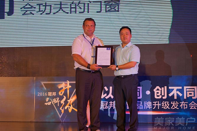 7月10日,“以不同 创不同”冠邦门窗品牌升级发布会在三水绿湖温泉度假酒店隆重举行,冠邦门窗总经理黄敏、舒德梅特集团总裁Manfred Rettensteiner、总经理Pierluigi Martinelli、天网安防总经理邱亮南以及冠邦门窗来自全国的优秀经销商近200人参与此次盛会。
