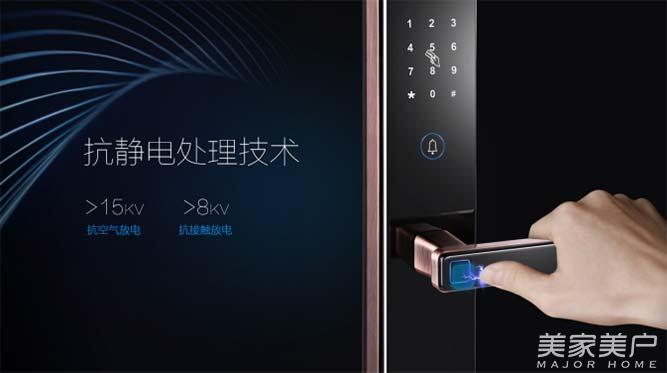 设在把手上的瑞典FPC半导体指纹传感器,有红、绿、蓝三色智能光环亮光提示,识别状态一目了然,识别时间小于0.7秒,开锁时指纹识别与下压把手一步到位,让用户体验到前所未有的一步开锁体验。具有中英双语导航和键盘指示灯导航,用户可以进行权限分级及常开、复位功能等系统设置和密码防窥开锁等操作。