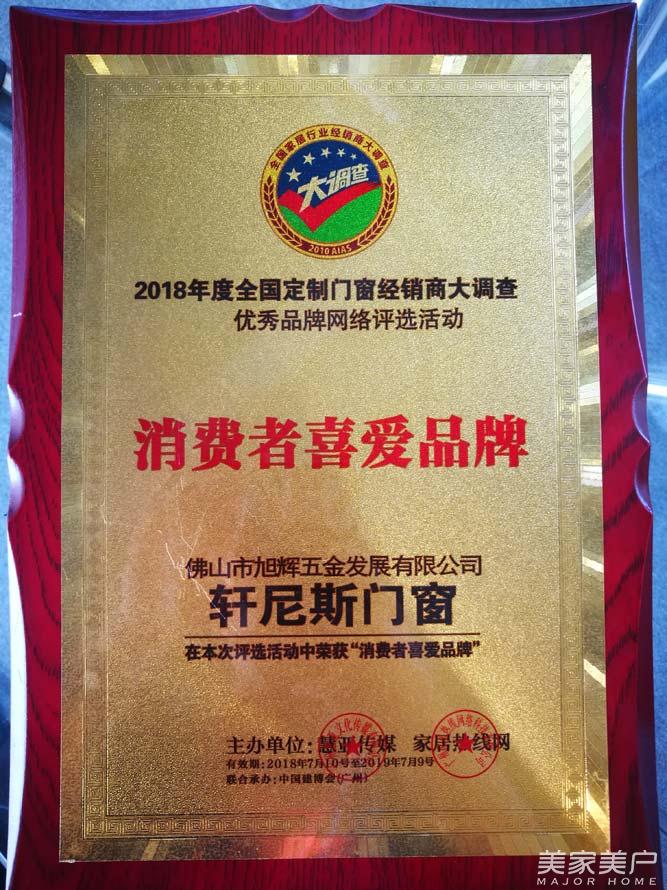 轩尼斯门窗荣获2018全国家居行业经销商大调查“消费者喜爱品牌”