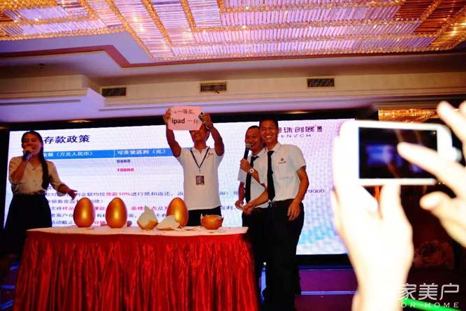 为了答谢经销商家人们对明珠创展的一路的支持与认可,明珠创展营销总监为经销商带了福利,“共谋发展,共创明珠”详细说了未来公司对经销商在推广方面会加大力度助推,全力配合经销商做活动,宣传、软文等等,感谢经销商家人们十年的同舟共济,为此今天在场的经销商家人们可以享受预存款优惠政策,现场预存并可砸金蛋拿礼物(小声说,礼物可是ipad来的)在邵总公布后经销商们可是按耐不住了,争先恐后的付款,(这真的没谁在付钱上是争着来的)现场不仅争付款,还有新家人的加入,现场签约明珠,此处有掌声。。。