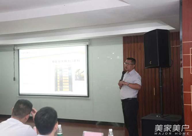 整体木门事业部总经理何烈前宣讲整体木门新品发布