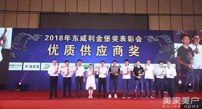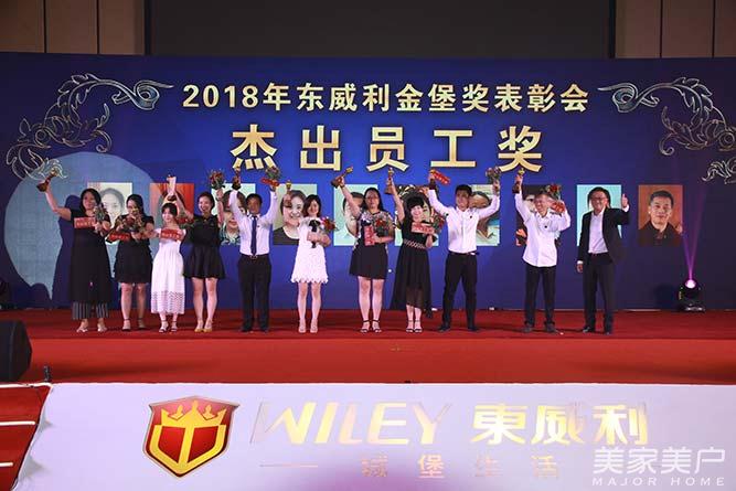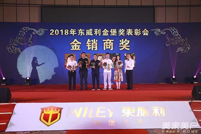 正如沙画中表现的一样,东威利城堡的构建离不开一位位杰出经销商的贡献。为此,东威利设立了金堡奖,表彰那些一直为东威利贡献付出的经销商们。现场颁发的杰出贡献奖,有10位的经销商获此殊荣,并关文宝董事长亲自颁发。接下来,还颁发了最佳形象奖。东威利的形象一直在行业中和消费者心目中,都有独特的认识。正是由于每一个东威利店面的精心设计和布置,才得以让越来越多的消费者对东威利印象深刻。两轮颁奖过后,由东威利家人们精心准备的小品正在精彩上演。通过几个场景,表现出来了东威利产品的发展历程。(场景一,展现了第一代的东威利门店形象,东威利凭借优质的产品获得消费者的认可。场景二,证明了东威利产品的优质性能,还兼备了防盗功能。场景三,描述了东威利转型升级整木定制的场景,运用统一的风格,优质的材料,给消费者带去了最佳的城堡生活。)精彩的小品过后,还为经销商颁发了2017年-2018年度销售业绩最佳殊荣。