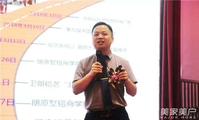 随后,朗原集团副总经理吴为杰上台为大家作朗原集团2018上半年工作报告。吴总以时间为轴,向在场的来宾介绍了朗原集团总部在上半年为了提升品牌实力的一系列动作。朗原集团斥巨资分别在广州、成都、西安、南京、济南、南昌、三亚机场投放广告;墅铝商学院多次开班招生授课等等。从三月份到现在,朗原集团一直没有停止前进的步伐,下半年朗原集团将在招商、扶持经销商等方面有进一步的行动,朗原的下半年会带给经销商更大的惊喜!