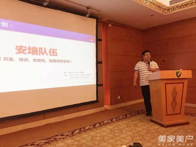 会议第一天,现代筑美家居常务副总经理鞠昶首先进行上半年业绩总结,并对公司销售订单三年预测及营销体系三年规划进行汇报。鞠总表示,在楼市调控、行业环保趋严、家装行业整体不景气的大环境下,现代筑美家居仍然保持着高速发展的势头,在2018年上半年取得了傲人的成就:纵观上半年,现代筑美接单量接近60亿元,相比去年同期增长1倍,预期全年可达120%的增长,发展势如破竹。预计未来三年,现代筑美将继续保持高速增长,四大件产品、拎包入住产品销售接单量有望在2019年突破200亿。