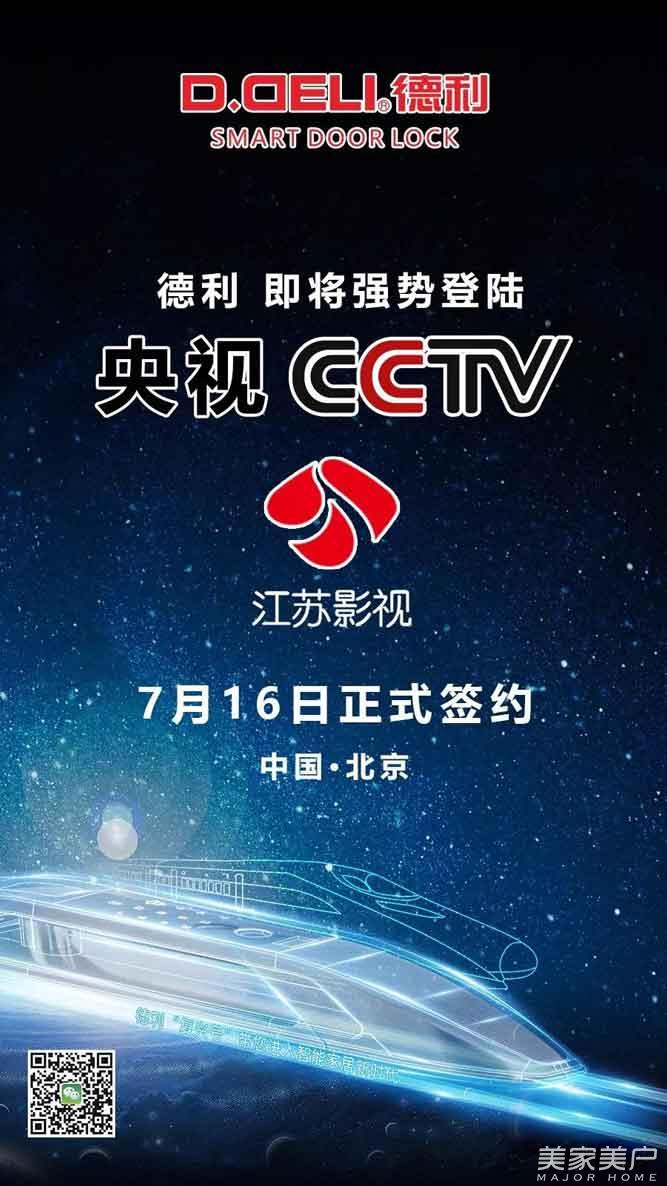 2018年7月16日,中山德利智能科技正式和中央电视台及江苏影视成功签约,将重磅登录CCTV、江苏影视频道,这意味着德利智能门锁的品牌传播迈入了一个新时代。