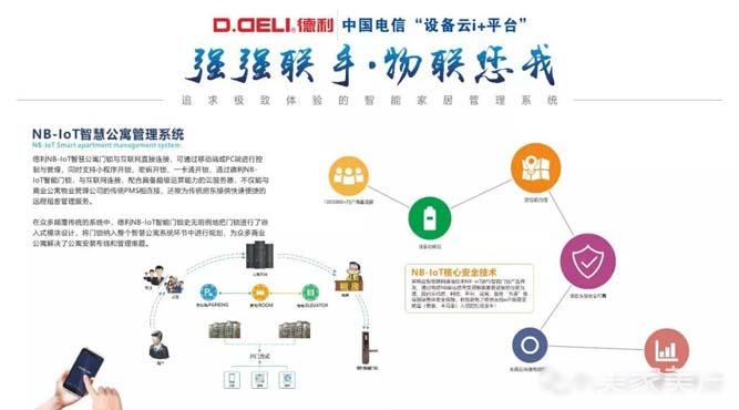 中山德利智能科技作为全国首家与中国电信合作的智能安防科技企业,从2016年以来投入巨资与中国电信合作,将最新物联网通信NB-IoT技术应用到德利智能门锁上,研发出互联互通的革命性物联网智能门锁产品,实现以德利中国电信“云”锁作为智能家居“云”平台把家庭智能安防、可视监控系统等系列智能家居产品物联互通,中山德利智能科技将带您提前进入AI人工智能物联网时代!
