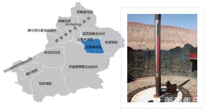 最热月(7月),在号称“火洲”的吐鲁番平均气温为33℃以上,绝对最高气温曾达至49.6℃,居全国之冠。由于新疆大部分地区春夏和秋冬之交日温差极大,故历来有“早穿皮袄午穿纱,围着火炉吃西瓜”之说。