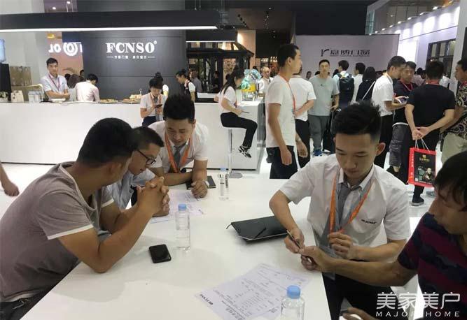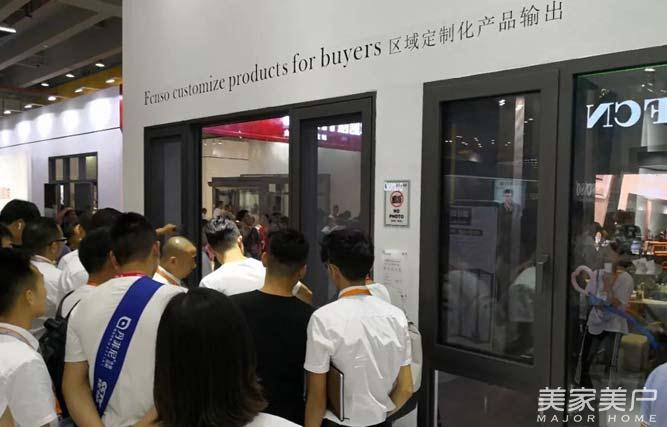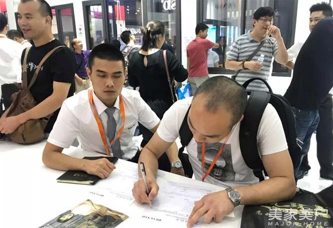 此次建博会【方索铂尊·全系新品】,寓意“金品质 君尊享”,展位设计趋向国际范,采用【极景·黑白灰】色系元素,17款同色定制主打【铂尊灰】产品,崇扬个性,拒绝花哨,刚一开馆,便吸睛无数,人气爆棚,竞相填表。