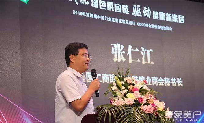 全国工商联家具装饰业商会秘书长张仁江随后致辞。他充分肯定了浙江省门业协会近几年发展的成绩。对木门产业链发表了自己的看法。