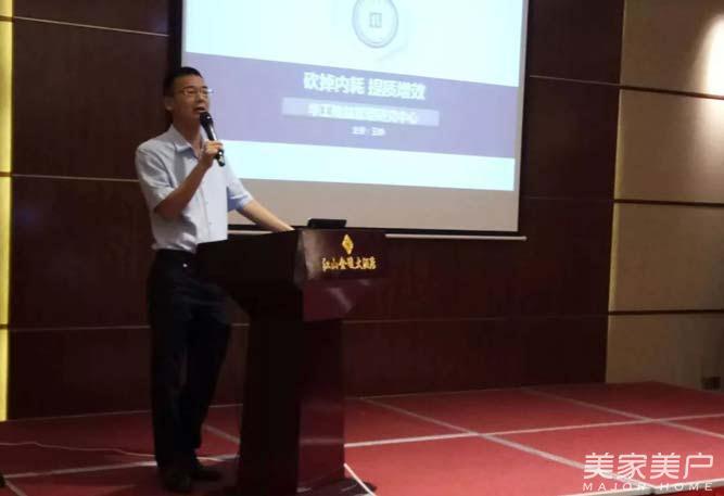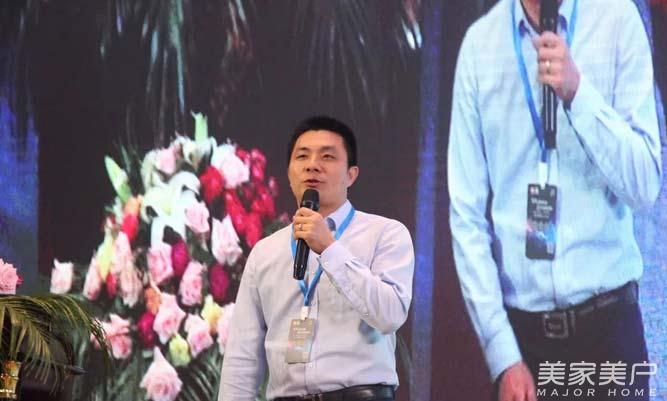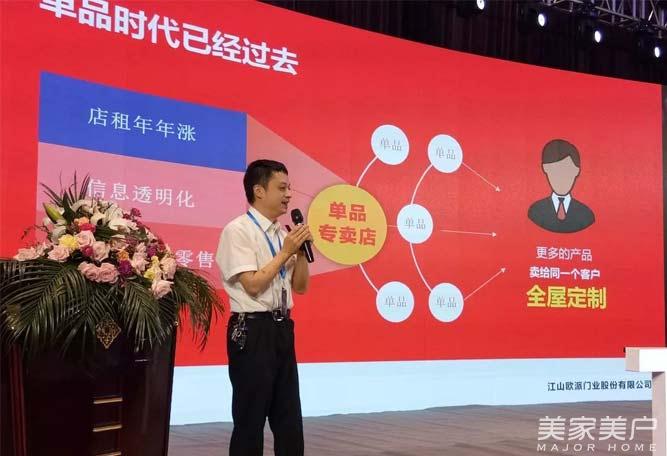 浙江省门业协会执行会长单位、江山欧派门业股份有限公司零售总裁周俊作主题演讲;就江山欧派目前实行产销分离,独立经营作了诠释,他们将致力于成为木门行业中的富士康,希望能寻找志同道合的伙伴,合作共赢。