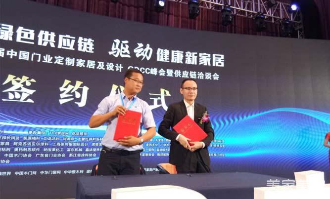 在致辞完毕后,峰会启动浙江省门业协会与企业签约战略合作伙伴仪式;