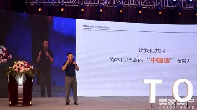 总冠名花王水漆董事长方学平致辞;他表示花王水漆具有不脱层、防霉菌、不开裂等优势,花王愿意和所有木门企业一起完成油改水的使命。