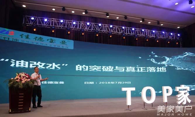 佳德宝曼总经理巩小虎主题分享《“油改水”的突破与真正落地》,巩总表示,通过UV底漆和水性面漆的工艺组合,综合成本可以得到有效控制,整体效率优于油性漆。
