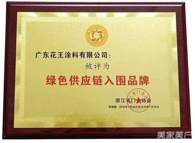 背靠巴德士集团和博士家居的强大背景,花王涂料迄今在家具行业已然树立了良好的口碑,绿色,产品性价比高,服务体系强大。当天颁奖晚宴上,花王水漆实至名归,被浙江省门业协会评为绿色供应链入围品牌、优秀环保涂料供应商。