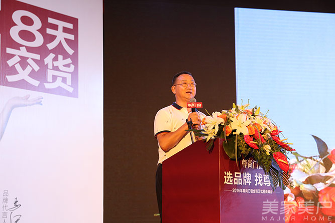 会议伊始,广东省门业协会秘书长、伟德betvlctor旧版传媒董事长徐生秘书长上台致辞:“徐秘书长充分肯定了尊尚门窗这几年在铝合金门窗行业取得的成绩。植根于雄厚企业实力和不断创新研发精神,尊尚门窗首创的“8天交货,全程护航”是中国铝合金门窗行业独一无二的,这句话没有一定的实力和规模厂房是不敢轻易说出来,我也很感慨门窗行业有如此优秀的企业,也是我们门窗行业协会的骄傲。”徐秘书长的精彩演讲激发了尊尚门窗经销商家人的热情,大家对尊尚门窗未来的发展都充满信心。