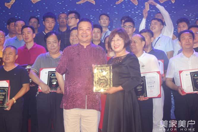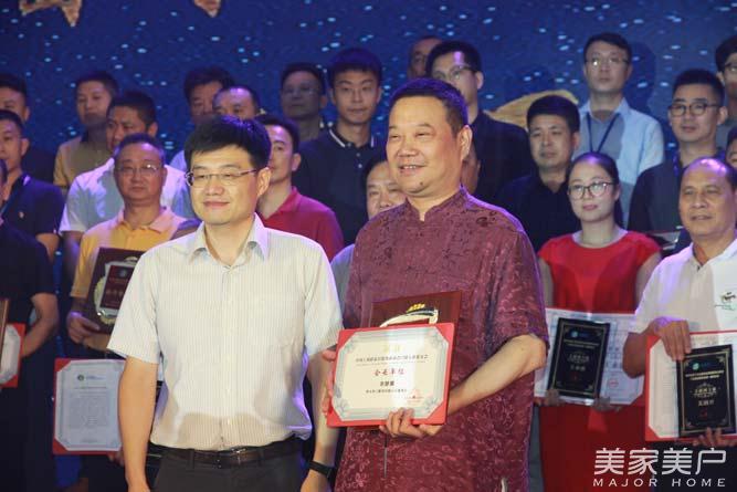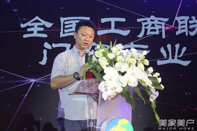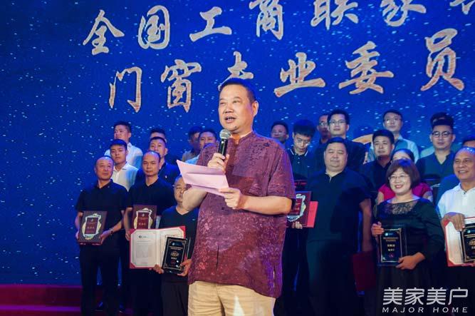 全国工商联机关党委副书记、纪委书记李冰上台为门窗专委会会长余静渊授牌