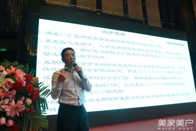 在接下来的环节中,易欧思系统门窗、泰诺风、江阴海达、天津南玻等企业的技术负责人分别针对系统门窗的技术应用做了主题推介,向参会嘉宾详细介绍了系统窗的技术应用方案。易欧思公司常务副总技术总工陈刚先生向大家重点介绍了系统门窗针对华北区域建筑项目的具体应用方案、地产招采人员在采购系统门窗时的注意事项及被动窗的介绍。