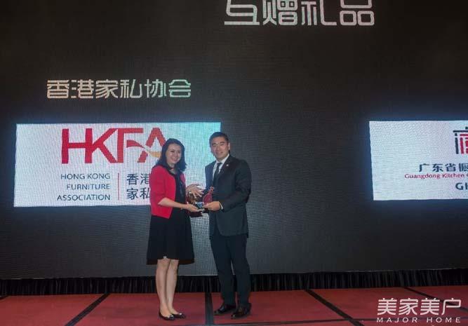 广东省橱柜业商会常务副会长王超代表与香港家私协会国内市场总监杨艳互赠礼物