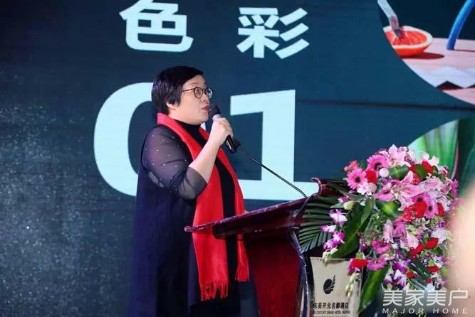 朗臻文化施丽华上台分享《国际家居室内色彩流行趋势》。她以巴宝莉、gucci等奢侈品为例,也提到了今年流行的莫兰迪色,各种流行元素,忍不住想多听一会。