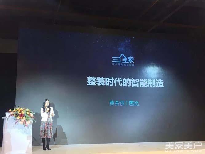 广东三维家信息科技有限公司大客户中心华西区总经理 黄金丽女士做主题演讲。她介绍到三维家为企业门店带来智慧设计、智慧导购,打造体验式消费门店,实现前后端一体化。